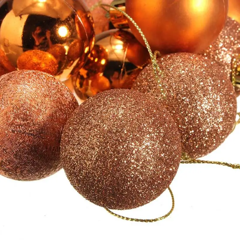 24 шт. блестящие Рождественские шары, украшения для рождественской елки, подвесные небьющиеся золотые черные Новогодние декоративные шары, набор украшений