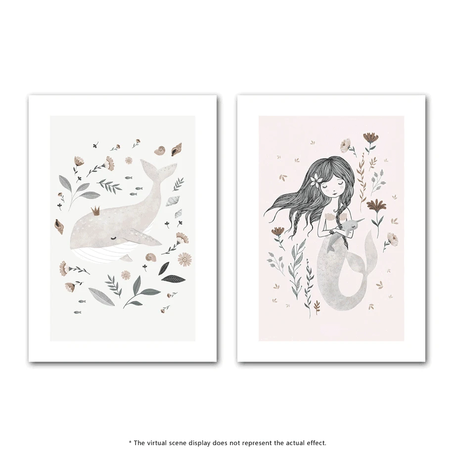 Мультяшный КИТ Русалка Цветок Листья настенная бумага Картина на хо...
