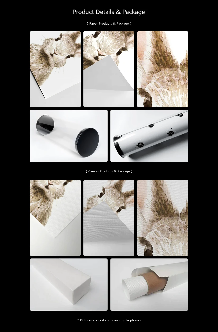 Живопись на холсте с кроликом и птицами, настенная бумага с милыми ...