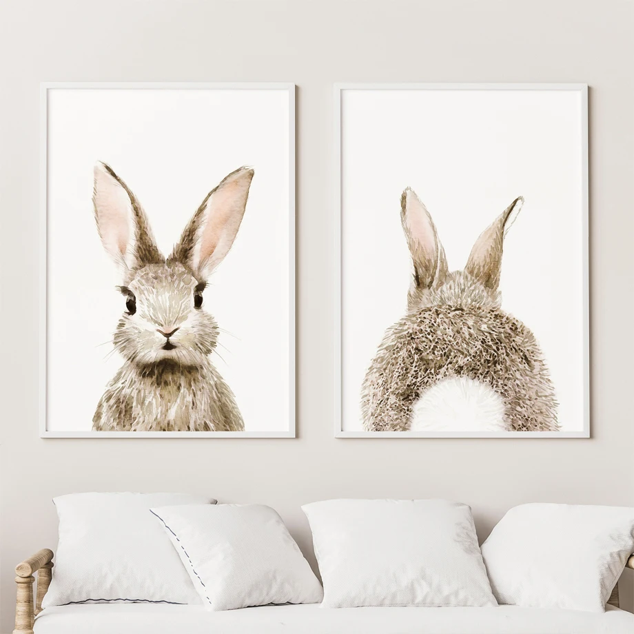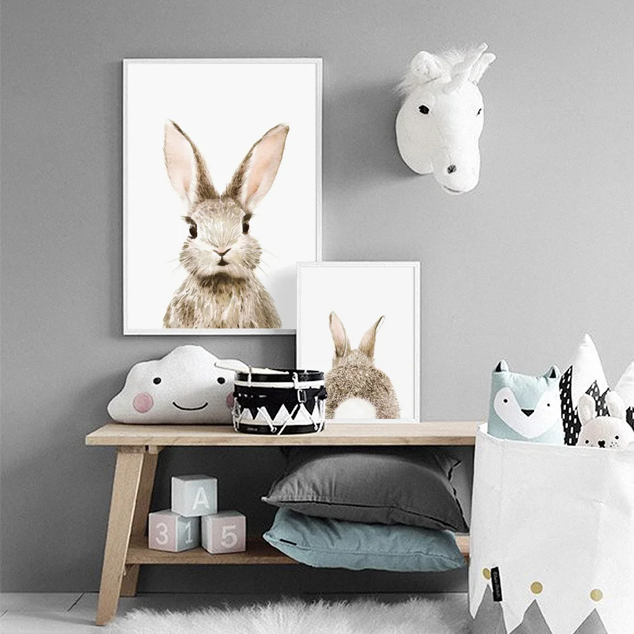 Настенная бумага с изображением лесных животных кроликов для детской комнаты, Картина на холсте, кролик, скандинавские плакаты и принты, домашний декор, картины для детской комнаты