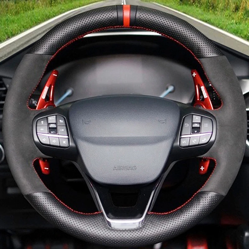 Черный замшевый чехол из натуральной кожи для Ford Focus 4 Escape 2019 2020 Fiesta Tourneo 2018-2020 Puma 2020