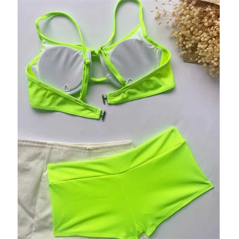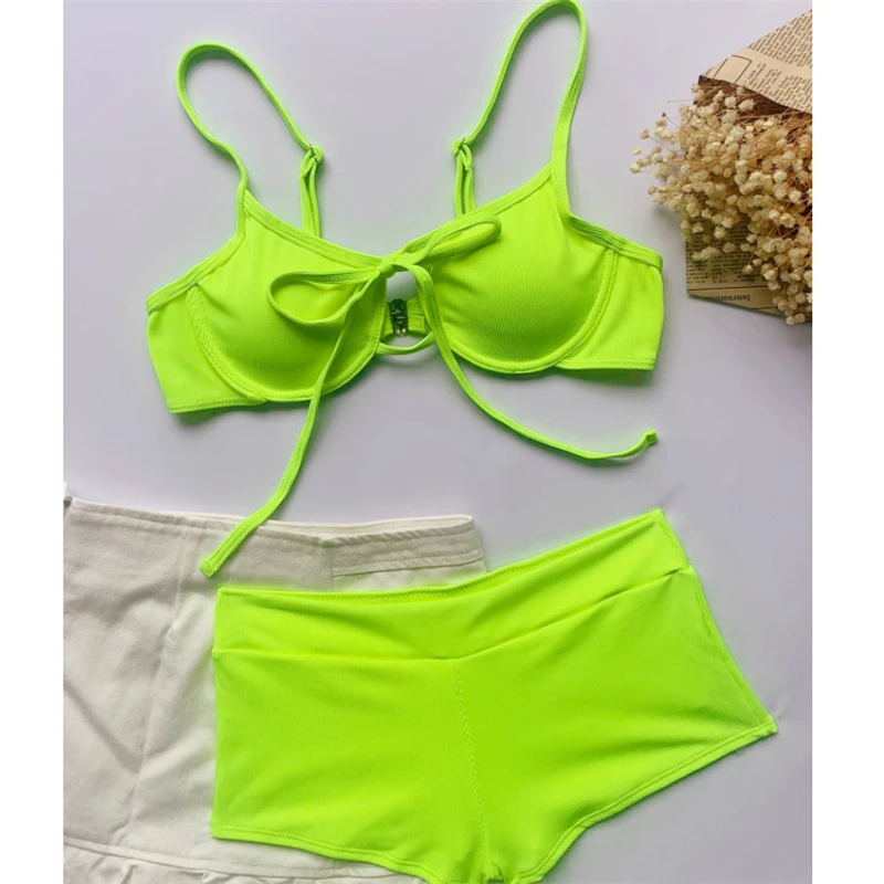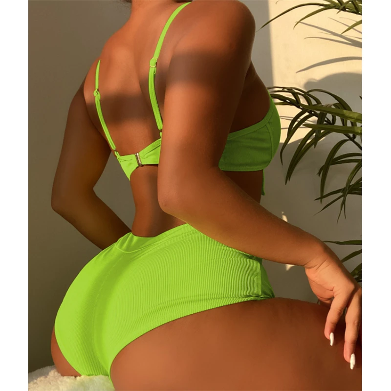 Сексуальный однотонный комплект бикини GNIM с высокой талией 2021 летний бандажный женский купальник из 2 предметов купальник с открытой спиной женский купальник бикини Новинка