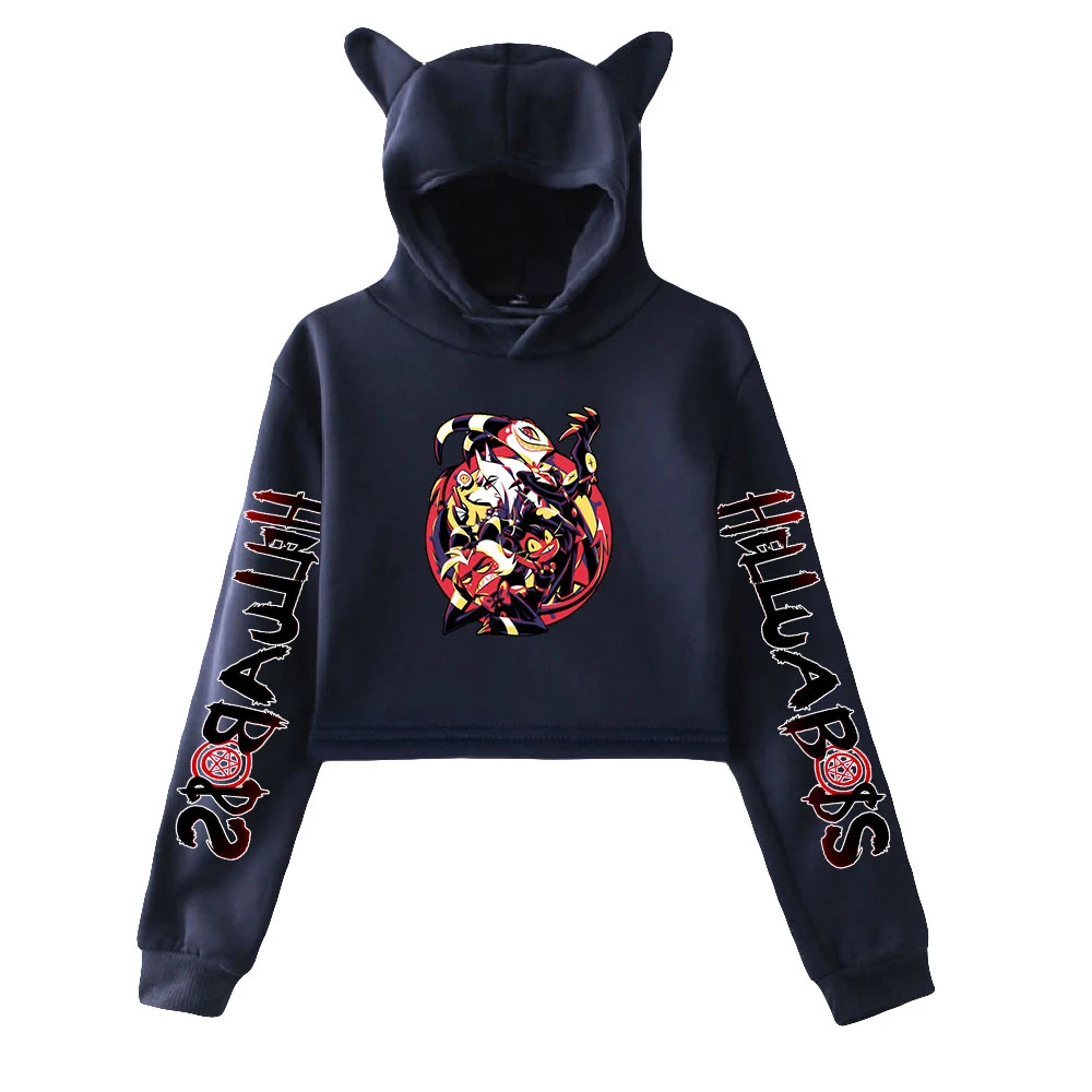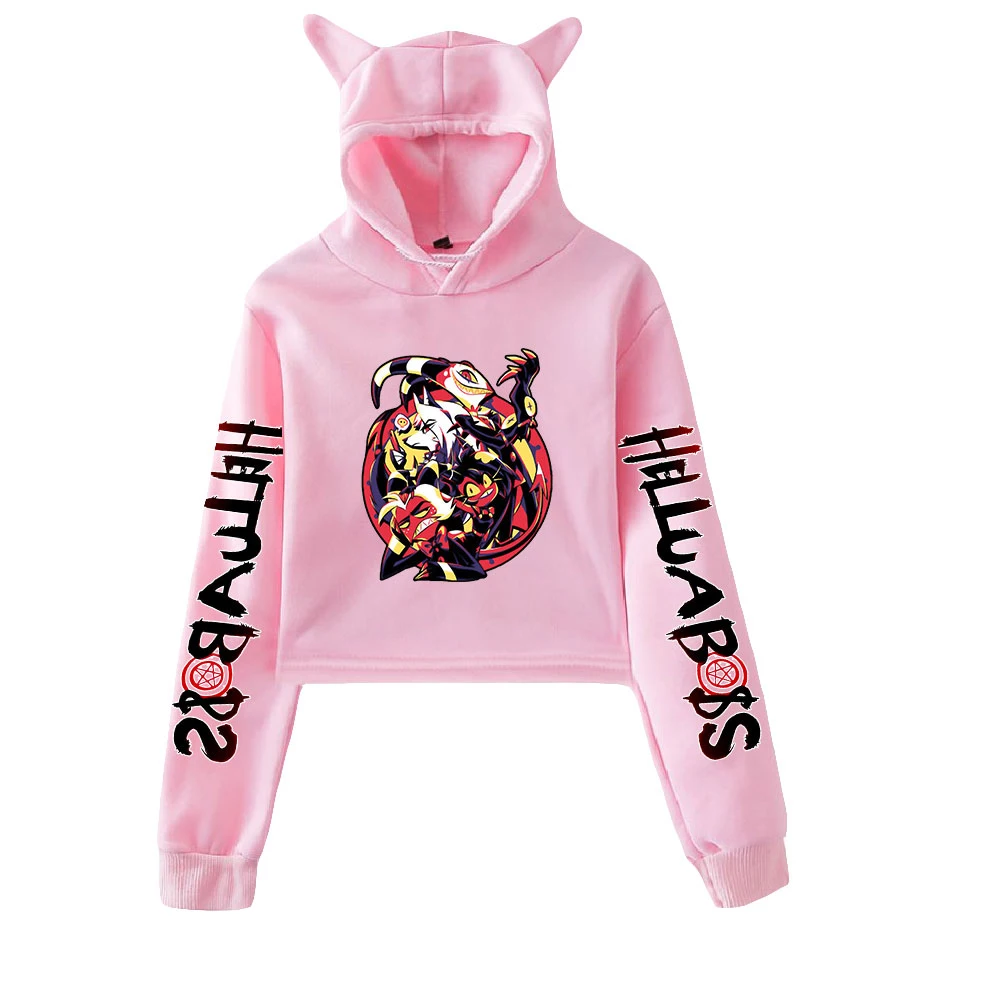 Толстовки Helluva Boss, толстовки с кошачьими ушками, укороченные топы для девочек, пуловер с капюшоном, укороченные топы, одежда из аниме, Милая сексуальная женская одежда