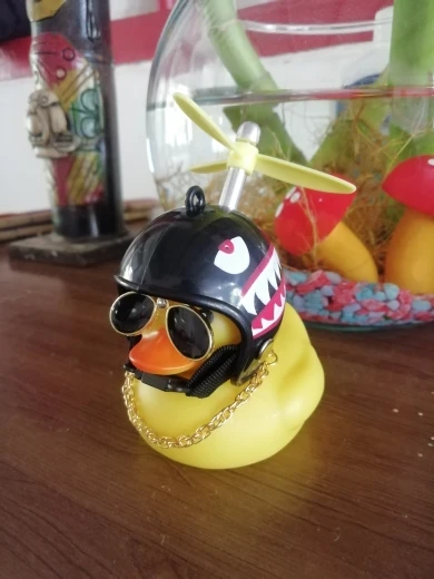 Материал: Резина + металл Цвет: желтая утка Информация о посылка 1 шт. желтая утка 1 шт. х шлем 1 шт. x Airscrew 1 шт. x Солнцезащитные очки 1 шт. x цепь Наклейка-1 шт.Примечание: