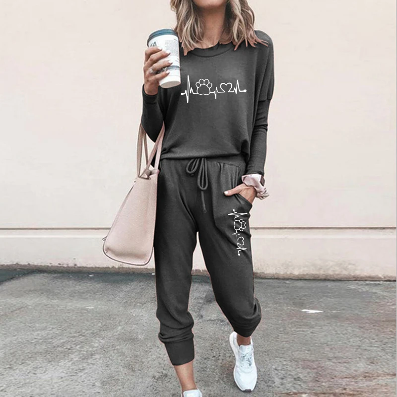 Женский комплект из двух предметов, рубашка, топ и брюки с эластичным поясом, спортивный костюм, женский пуловер с длинным рукавом, Повседневная рубашка, свободные брюки
