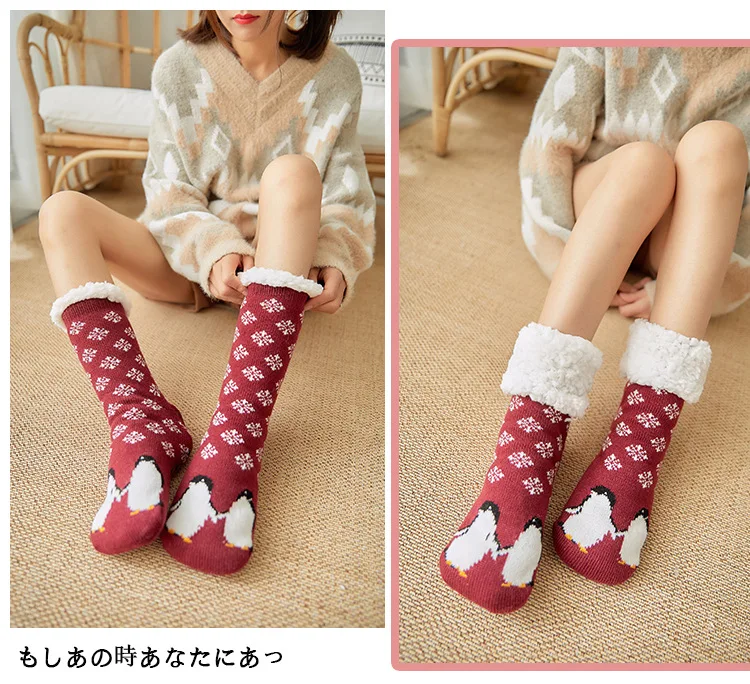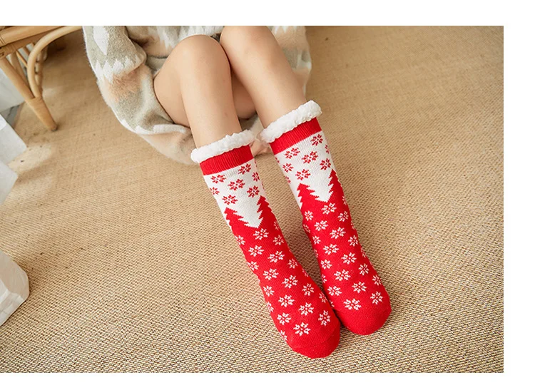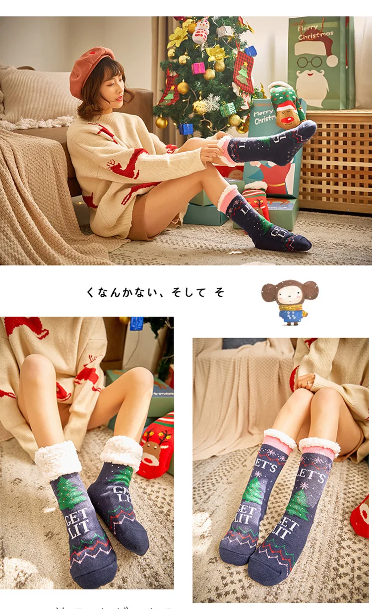 Носки рождественские женские, хлопковые нескользящие, с Санта Клаусом, елкой, снежинкой, оленем, для девочек, для счастливого дома, новогодние