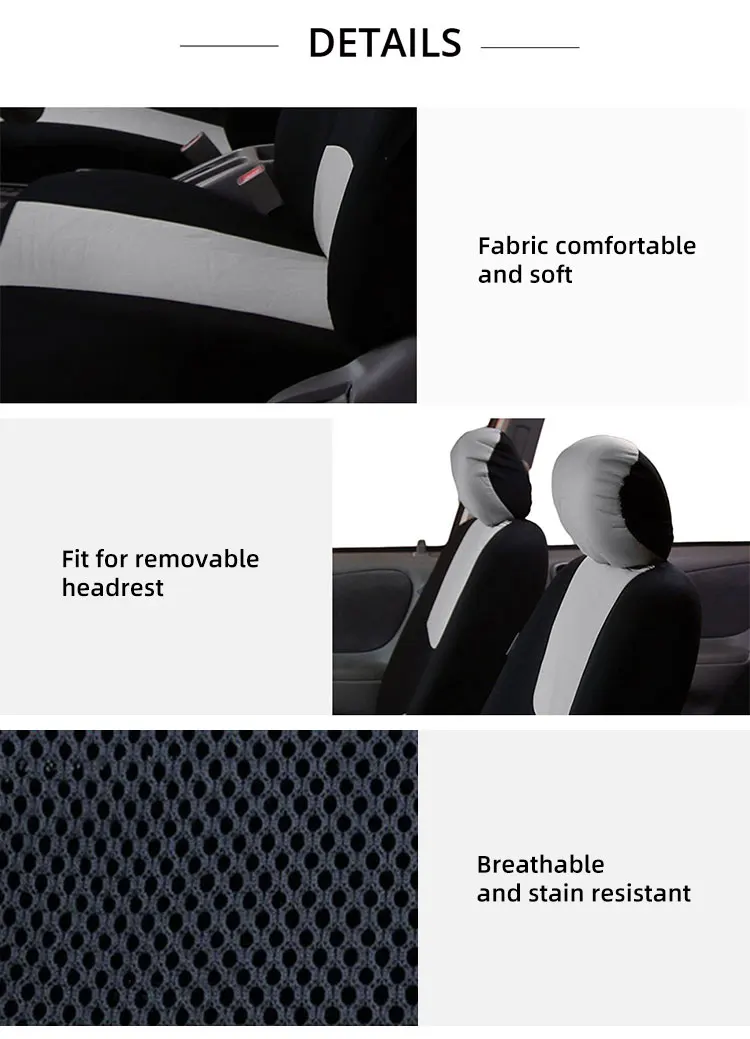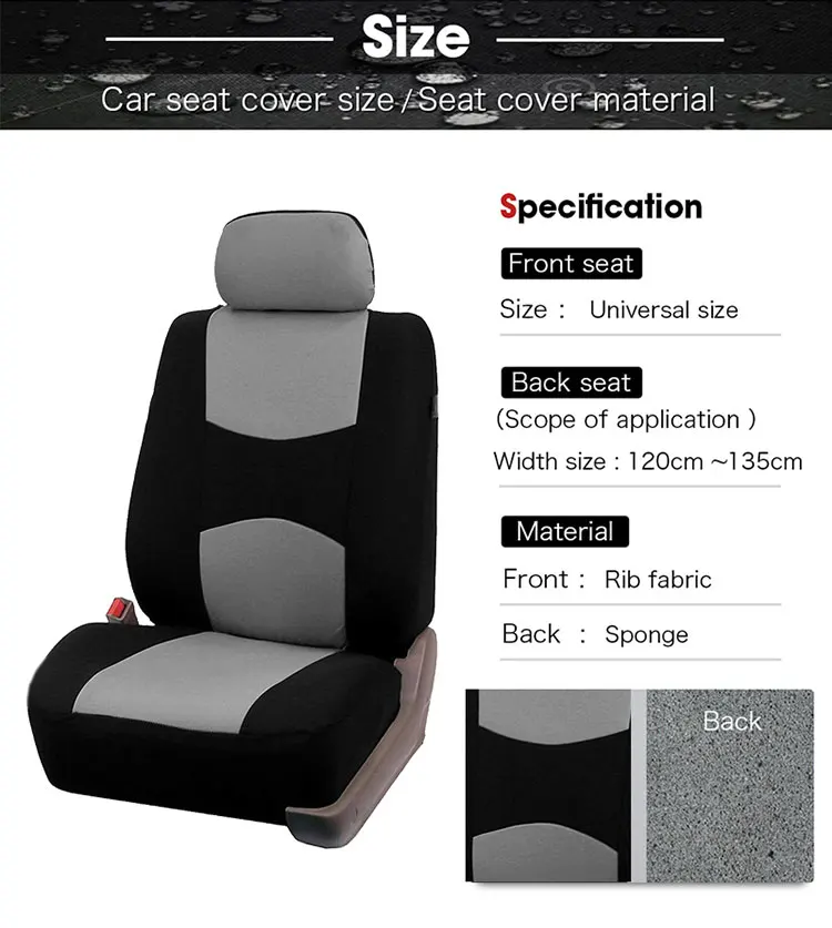 Материал-прочная губка из полиэфирной ткани, водонепроницаемая и легко моетсяПодходит практически для всех транспортных средств, как для передних, так и для задних сиденийБыстрая установка-надевайте и снимайте в течение 3 секундЛегко складывается для хранения, эластичный ремешок для завязывания