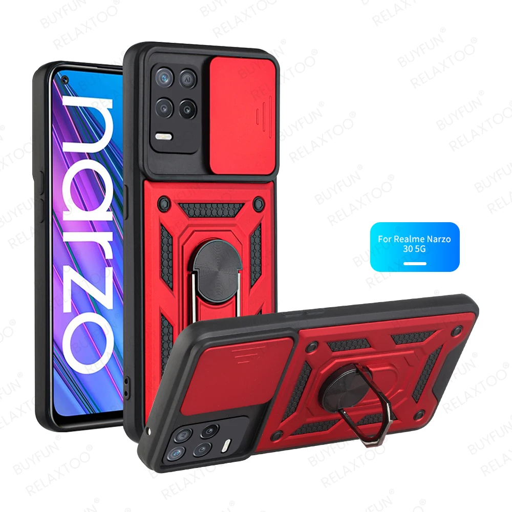 Чехол для Realme Narzo 30 5G, чехол с кольцом и магнитным кронштейн...