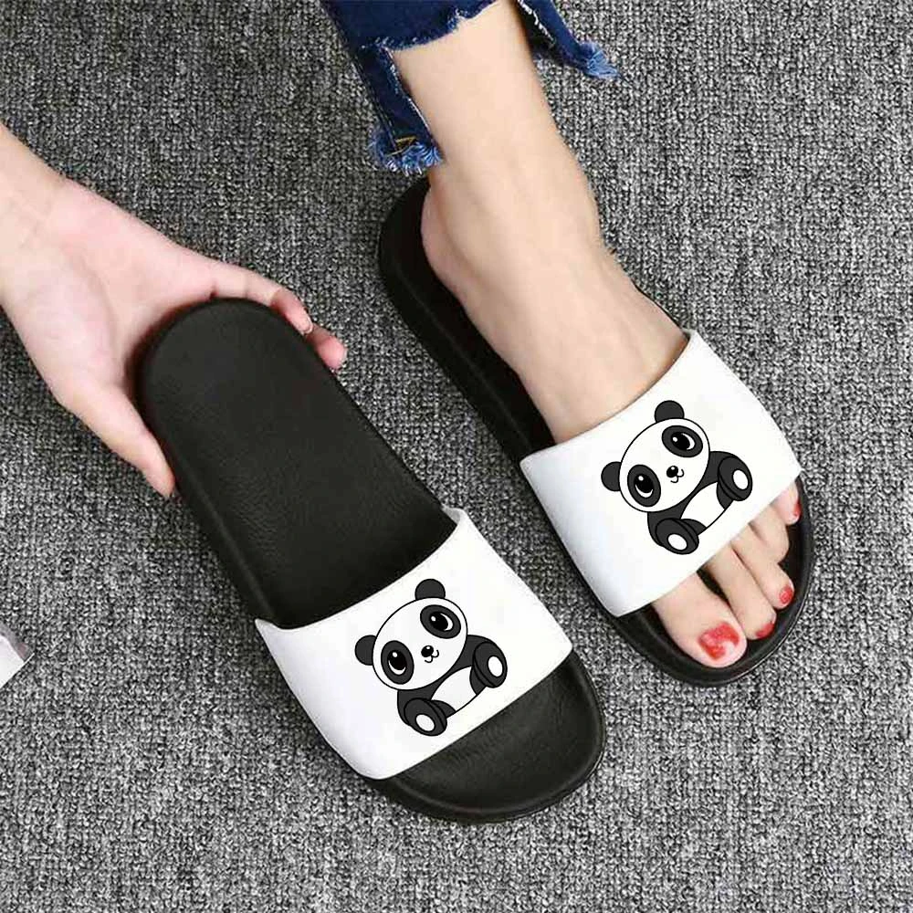 Шлепанцы женские домашние Нескользящие, сандалии с рисунком панды, тапочки для дома, летняя обувь, 2021