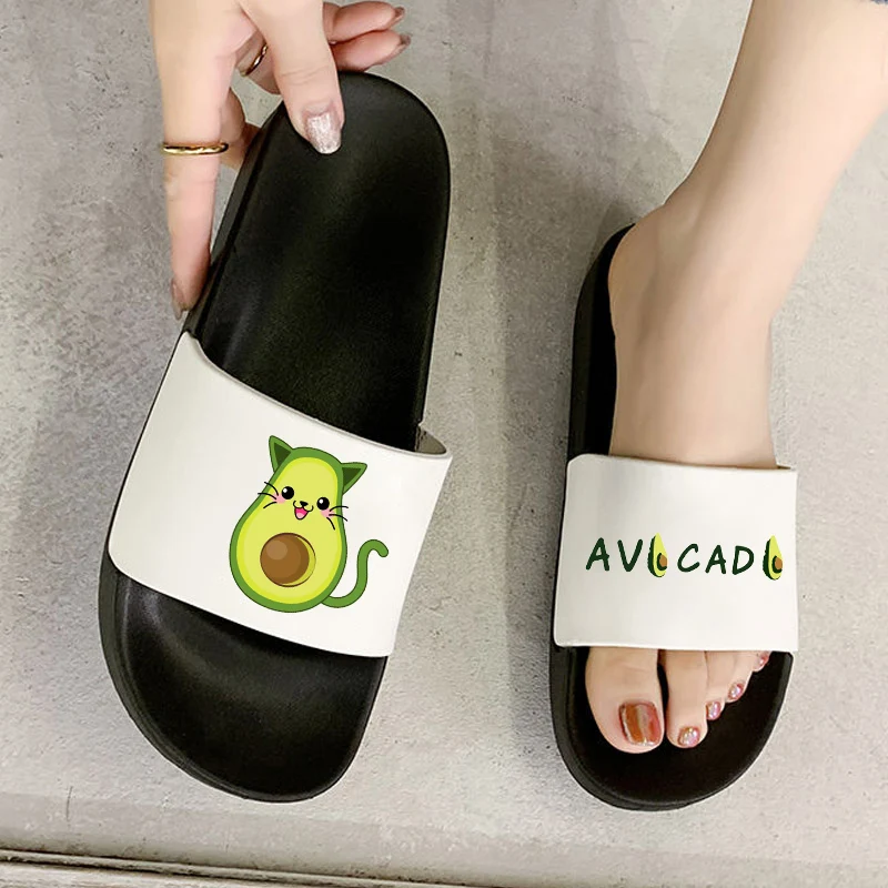 Сандалии женские нескользящие, плотные шлепанцы для дома, сланцы с авокадо, для ванной комнаты, спальни, пар, летняя обувь