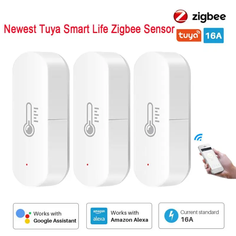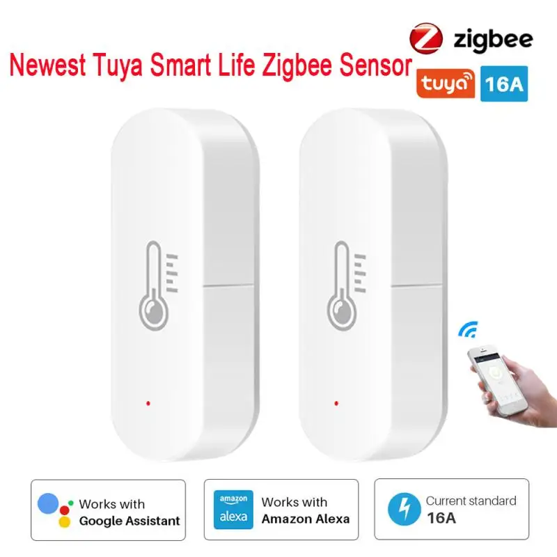 Датчик температуры и влажности Tuya Zigbee, беспроводной детектор безопасности с питанием от аккумулятора, работает с Alexa GoogleHome