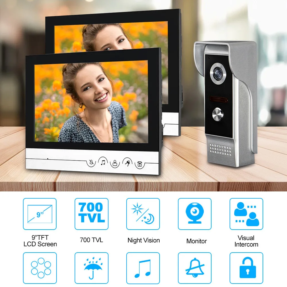 Домофон с 9 "экраном для квартиры, видеодомофон с ИК-подсветкой и функцией ночного видения, дверной звонок, камера для виллы, видеодомофон для дома