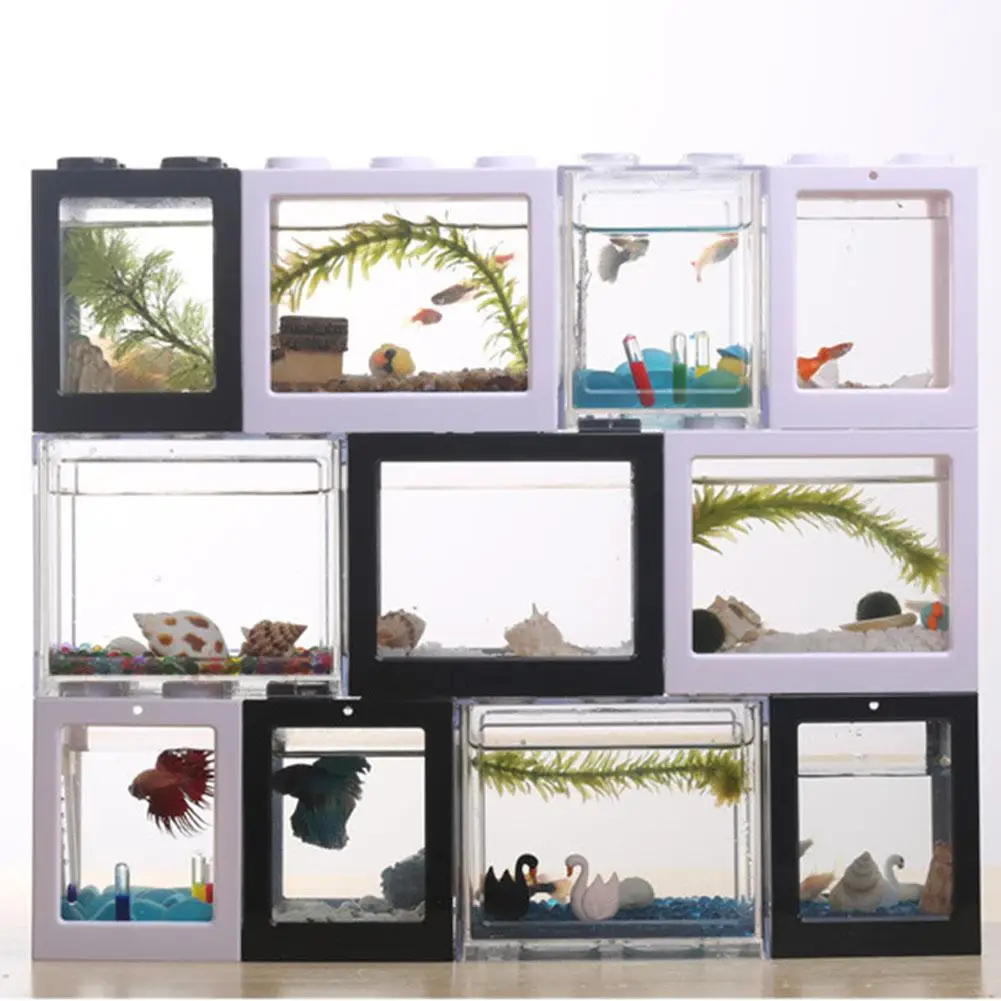 Креативные разноцветные штабелируемые строительные блоки экологический мини аквариум для рыб маленькая рептилия коробка для домашних животных ландшафт морской