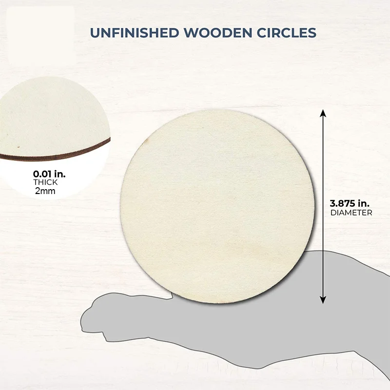 Необработанные деревянные круглые вырезы, 4 дюйма, 5 шт.