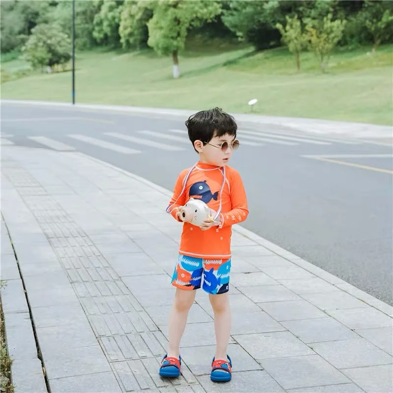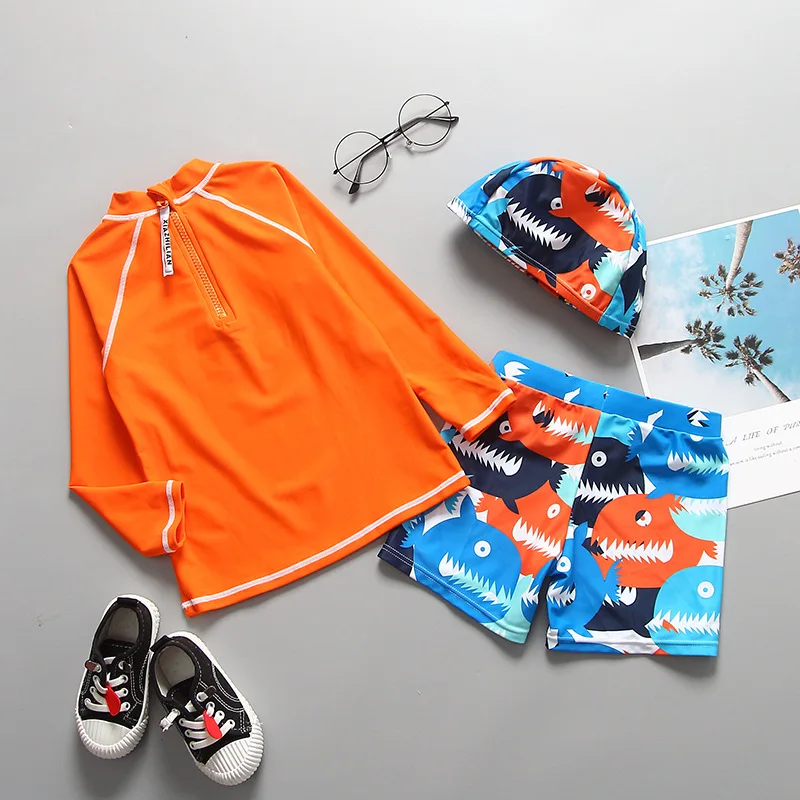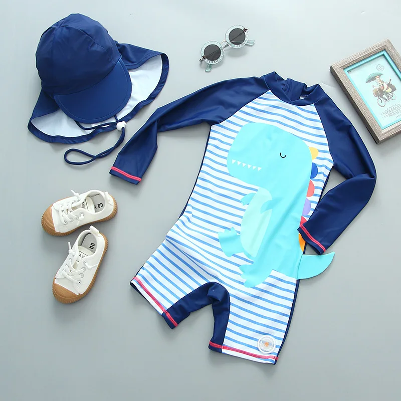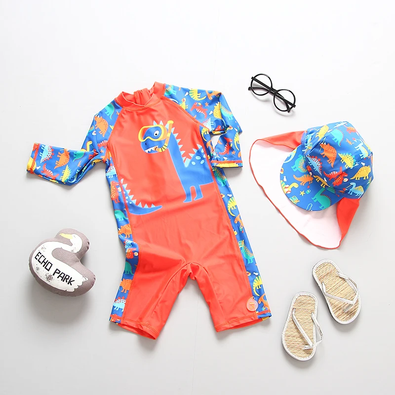 Детский купальный костюм для бассейна; Пляжная одежда; Одежда для мальчиков с защитой от ультрафиолета; Одежда для купания с длинными рукавами; Цельный комбинезон; Детский купальный костюмИнформация о продуктеС UPF 50 + защита от солнца с мультяшным принтом динозавра и акулы, этот набор Рашгард держит его милым и защищенным весь день.Комплект из 3 предметов с крышкойДлинный рукав и короткий рукавUPF 50 + защита от солнцаЭкспорт стандартного качестваСтирка и уходРучная стирка с водой до 10 ℃Стирать отдельно с другой одеждойБез замачивания, без мыла, без моющего средства, без выпечкиЛиния сухой