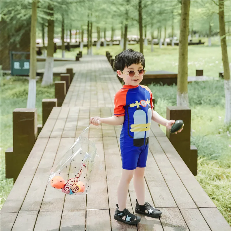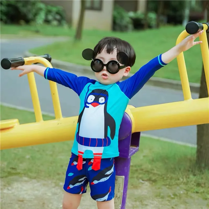 Детский купальник, пляжная одежда для бассейна, купальник для мальчиков с УФ-защитой, цельный комбинезон с длинным рукавом, детский купальный костюм