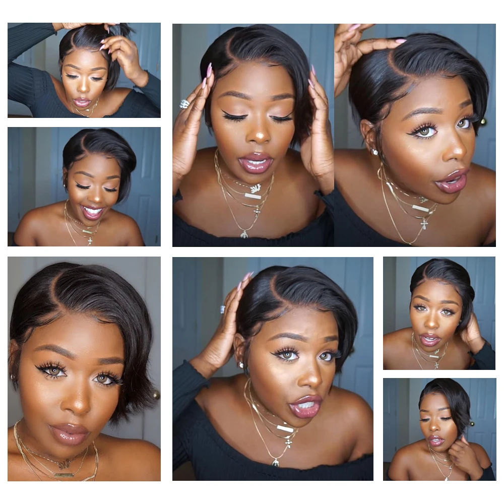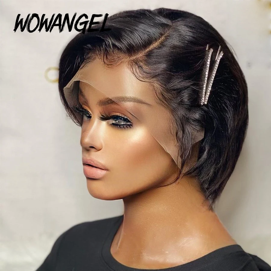 150% предварительно выщипанные волосы, короткие волосы Челси, короткий парик 13X4 T, кружевной передний парик из человеческих волос, перуанский Реми, Отбеленный узел, натуральный черный