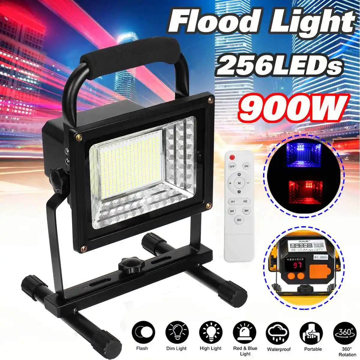 Особенности:900 Вт супер яркий светодиодный светильник, достаточно яркий.Вращающиеся на 360 ° Прочные наружные прожекторы для удовлетворения большего количества требований.ЖК-дисплей с пультом дистанционного управления, удобныйСветильник-вес, очень портативный, Высокий/низкий/вспышка может регулироваться.Перезаряжаемый, USB зарядка для непрерывного освещения.Идеально подходит для чрезвычайных ситуаций, технического обслуживания, садовой работы, отеля, кемпинга и пригорода.Применение: подходит для обслуживания автомобиля, охоты на открытом воздухе, альпинизма, кемпинга, рыбалки, наружного освещения, охранных сигнальных огней.