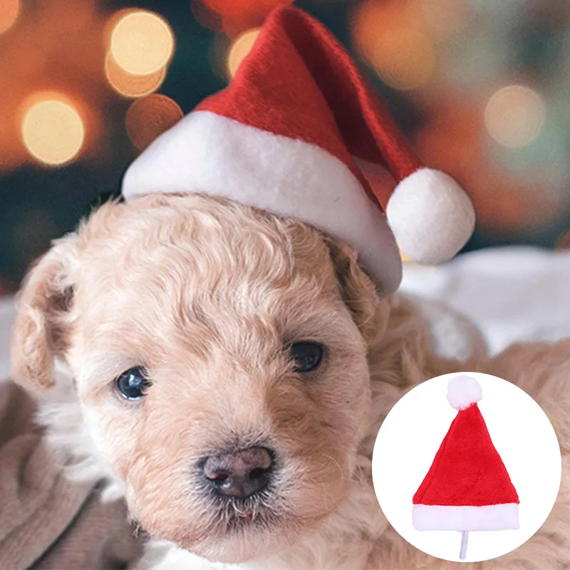 Рождественская шляпа для животных, Рождественская кошка, орнамент с изображением собак, шапка Санта Клауса, зимняя теплая Рождественская Новогодняя плюшевая шапка, вечерние рождественские украшения для дома