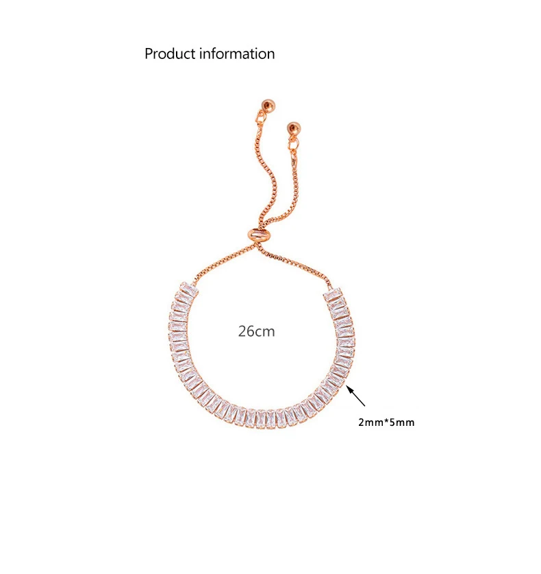 Новый Модный женский серебряный цвет браслет из розового золота для женщин Кристальный квадратный браслет с подвеской Свадебный прекрасный подарок ювелирных изделий
