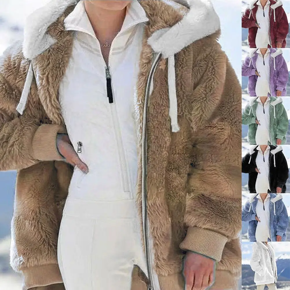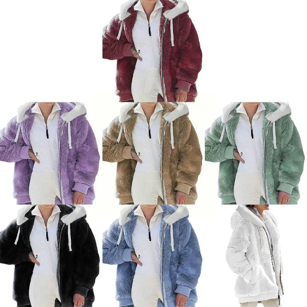 Женский свитер из искусственного меха, зимняя теплая верхняя одежда с карманами и капюшоном, кардиган, верхняя одежда на молнии, новинка 2021
