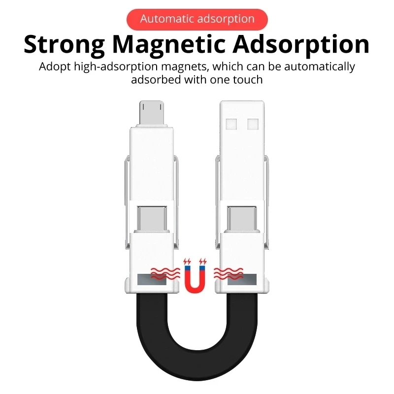 1 шт. 4 в 1 Магнитный брелок USB-кабель Micro USB зарядный провод USB Type-C портативный короткий внешний аккумулятор шнур для передачи данных для iPhone Android