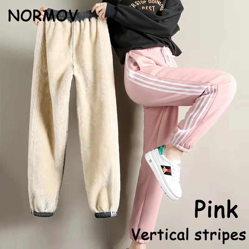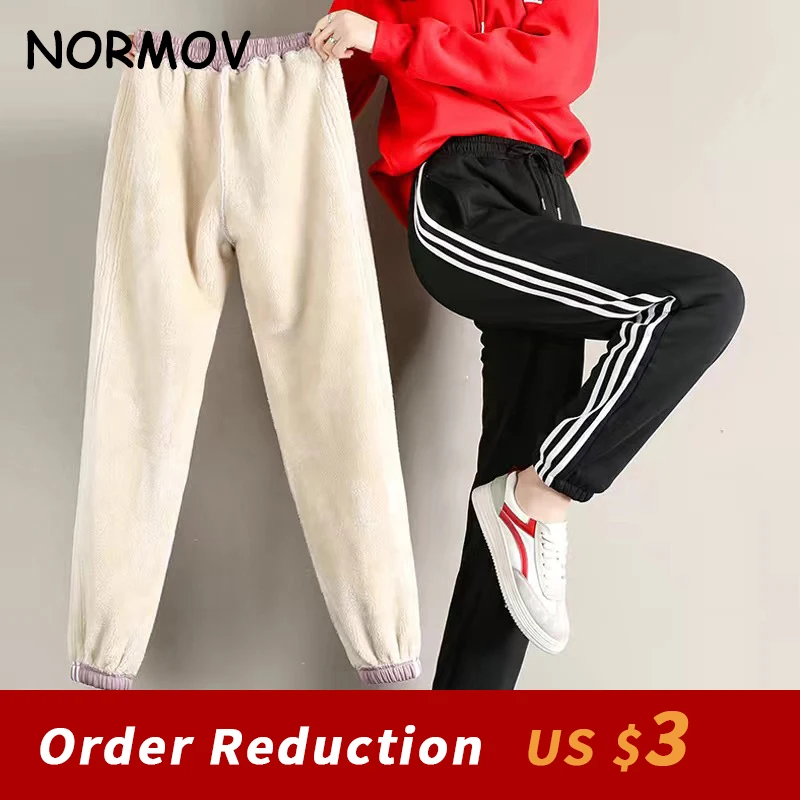 Зимние женские флисовые брюки NORMOV, плотные теплые спортивные брюки для спортзала, повседневные Однотонные эластичные свободные женские леггинсы с прямыми штанинами на шнуровке
