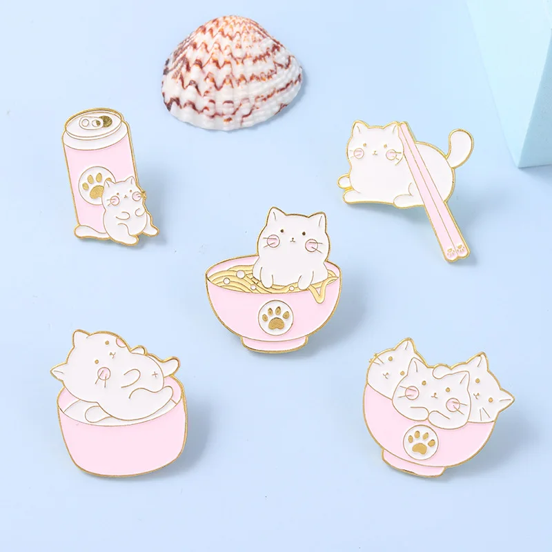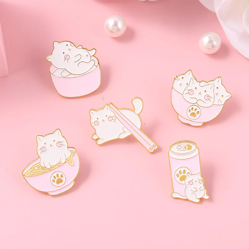 Эмалированная булавка для питомцев, розовая эмалированная булавка в форме лапши, миски, металлические значки, булавки для сумки, одежды, подарочные украшения для любимых кошек
