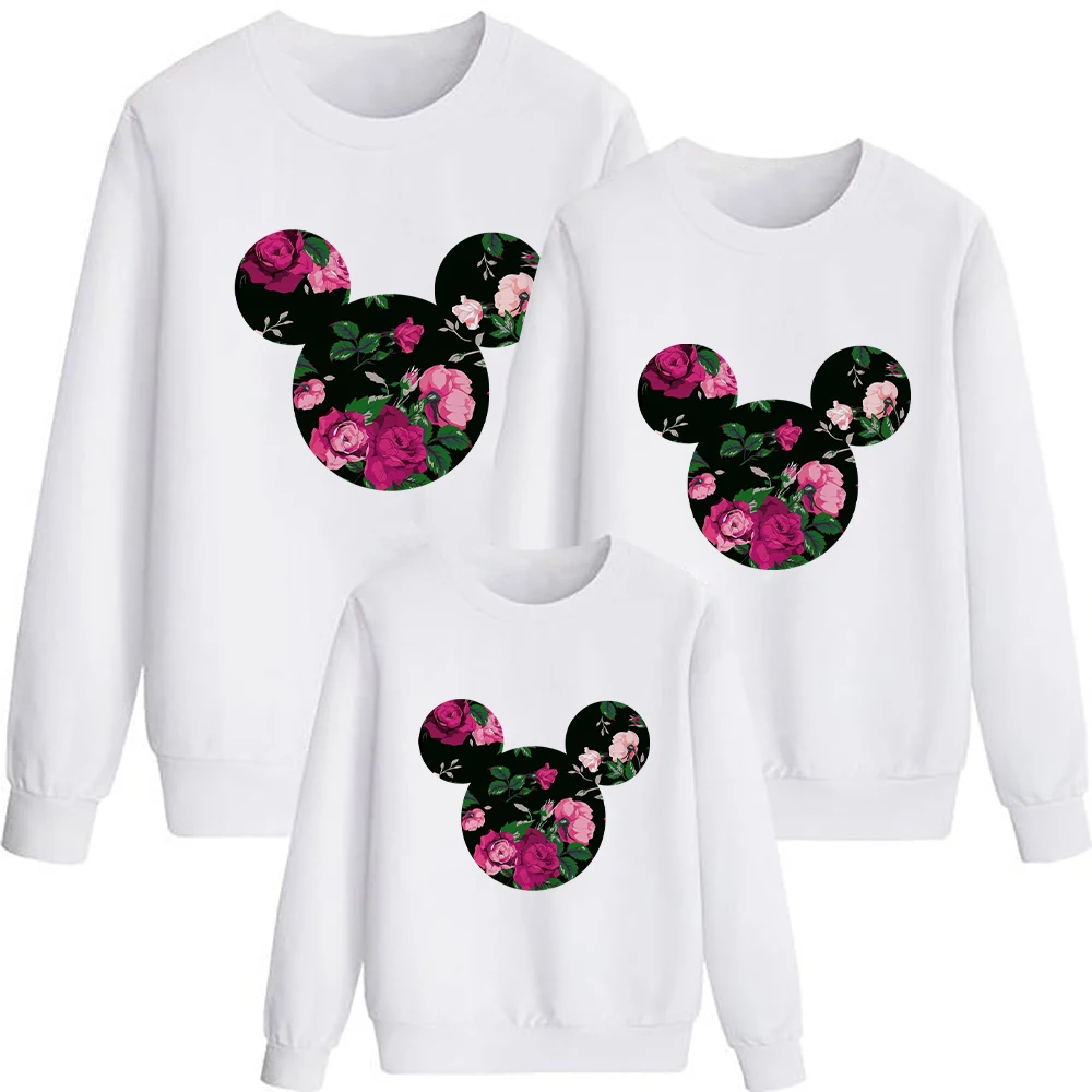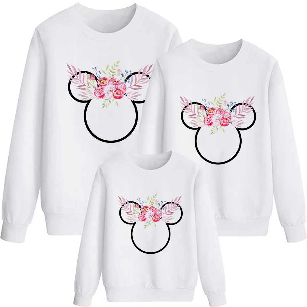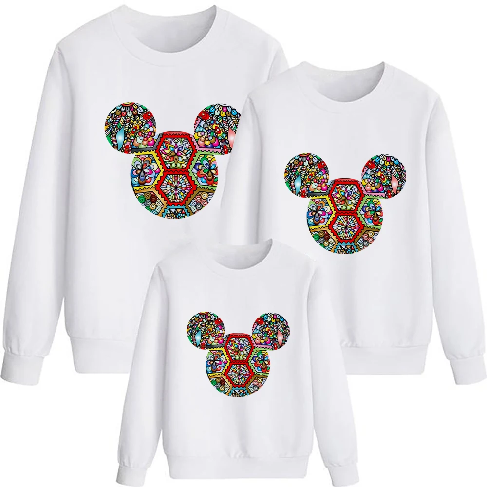 Повседневная Уличная одежда с изображением Микки из мультфильма Disney, Свитшот унисекс, платье для мамы и дочки, простые худи с изысканным анимационным принтом, пуловер