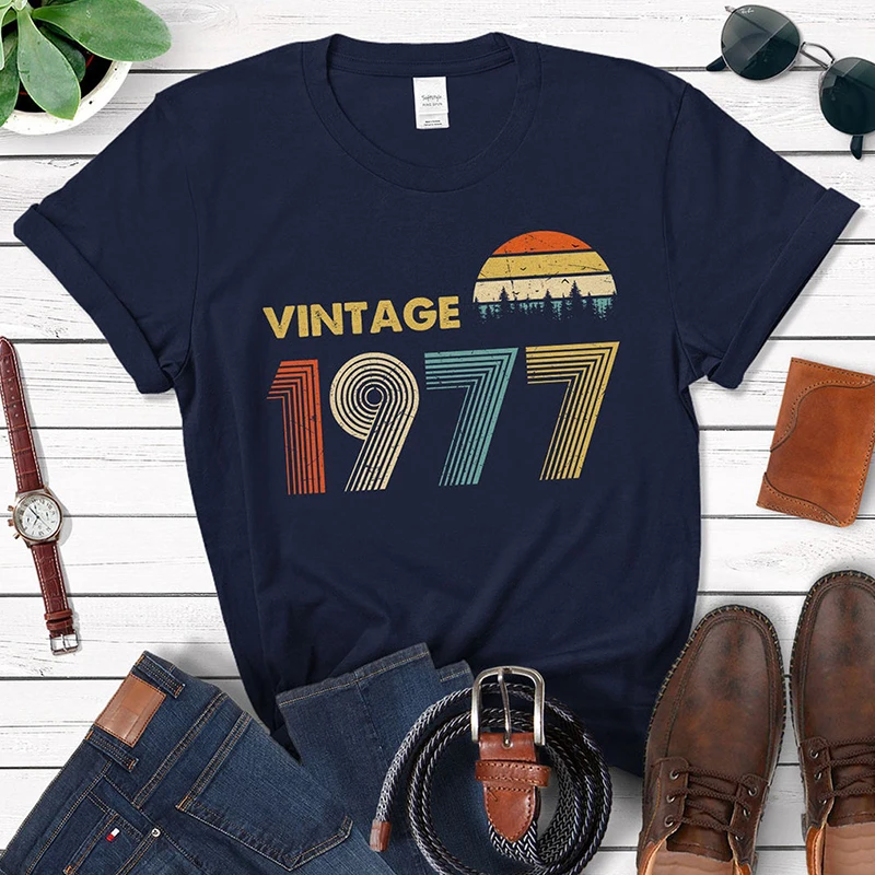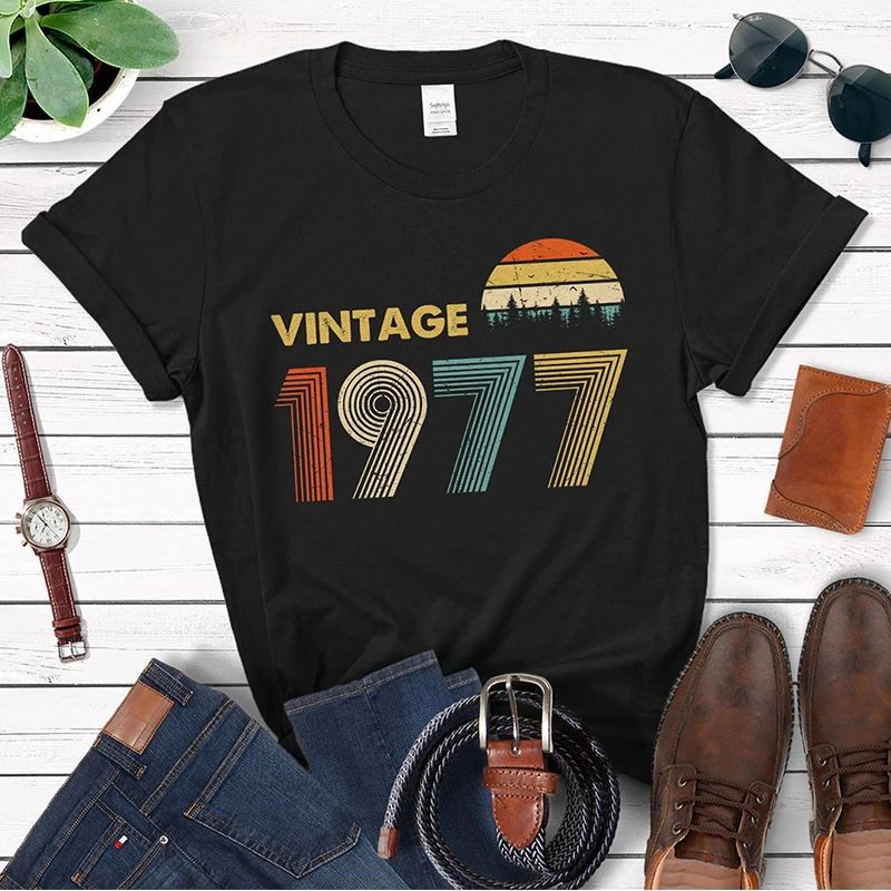 Винтаж 1977 для женщин Футболка 44th подарок на день рождения идея для 44 лет отец папа мама бабушка унисекс 70s Ретро Классический Футболка