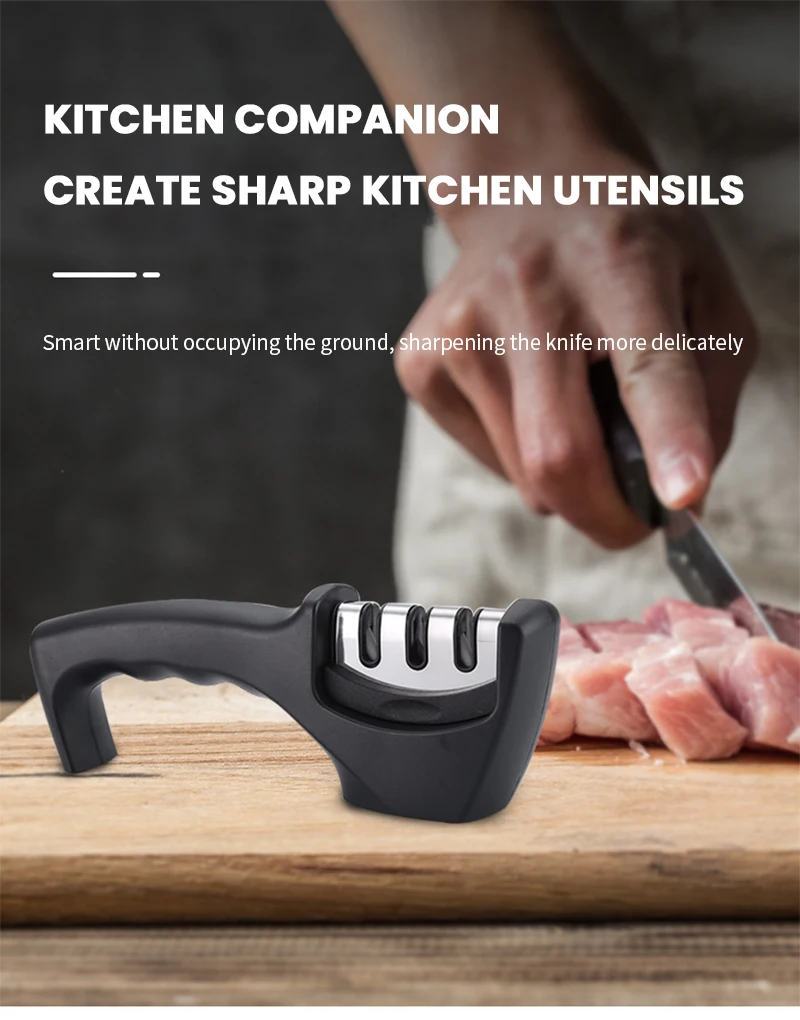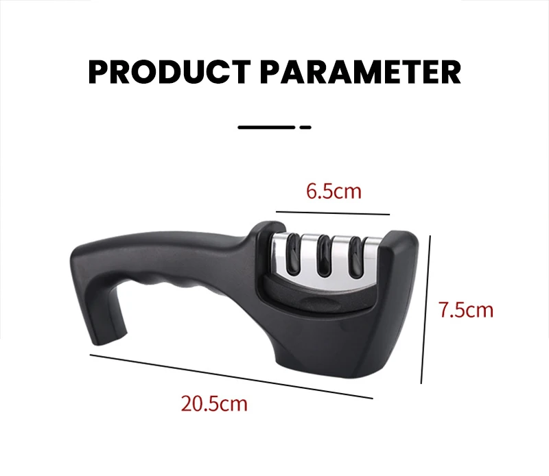 Эта точилка подходит для всех видов ножей. Держите нож острым и готовым к использованию. Это очень удобно в использовании, девушки могут легко контролировать его, и это безопасно и долговечно.