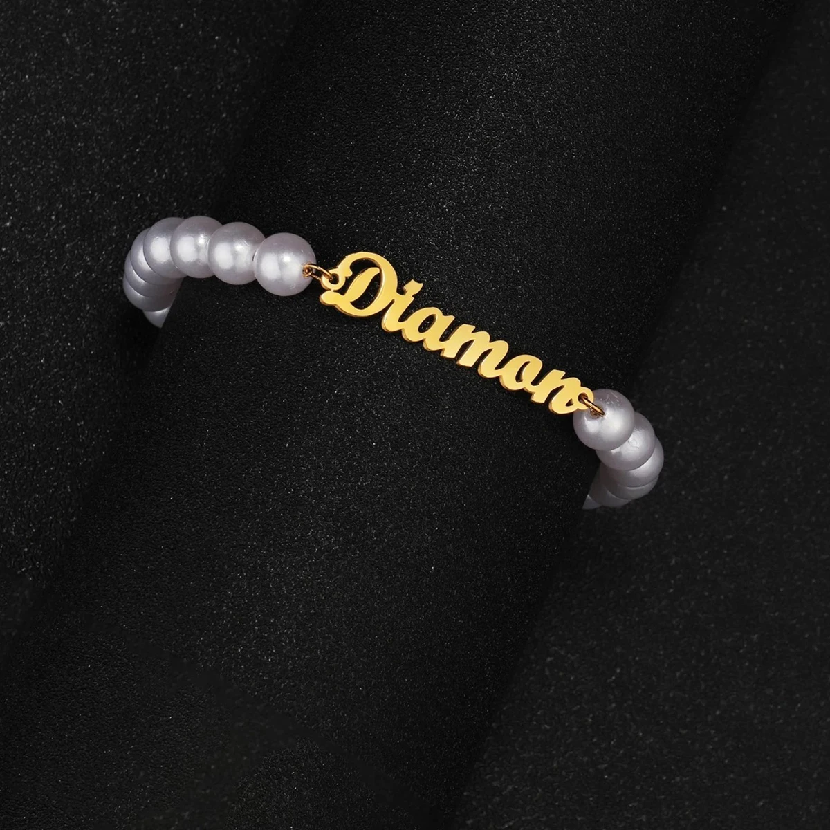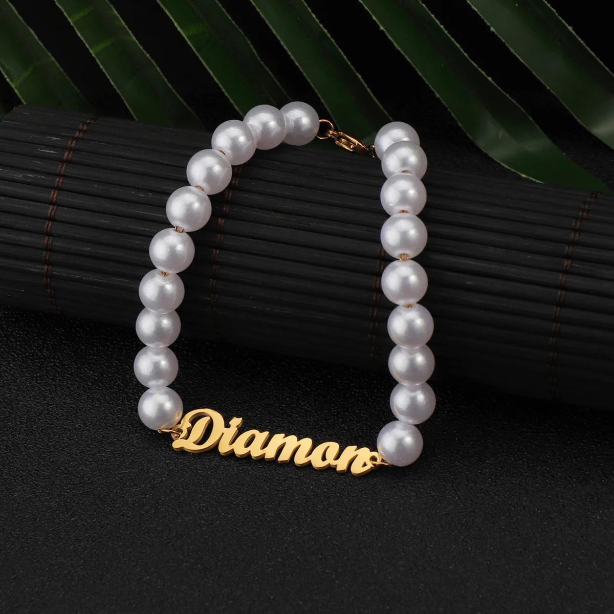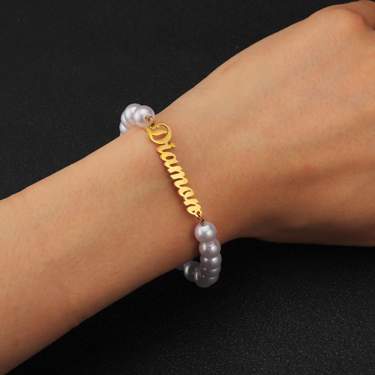 Индивидуальный индивидуальный браслет для женщин, цепочка с имитацией жемчуга и именной табличкой, браслет из нержавеющей стали, ювелирные изделия вечерние Ринок
