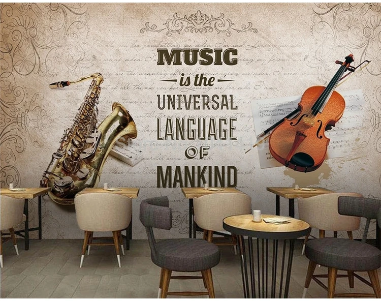 Пользовательские фото обои ретро ностальгическая музыкальная тема декоративная живопись 3D настенная роспись ресторан кафе фон настенная бумага Декор