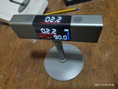 Товар прибыл, как было заявлено продавцом. 20 дней после покупки до доставки. На мой взгляд, продукт имеет отличную отделку и строительство. Имеет относительно компактный размер, можно носить в кармане. Освещение прочное, что обеспечивает четкость чтения информации. Думаю, что это не уровень, подходящий для тех, кто работает в более тяжелых (грязных), так как шрам дисплея очень легко. Все еще не протестирован Срок службы батареи. База, сопроводящая уровень, является пластиковой, без больших деталей. Я доволен покупкой.