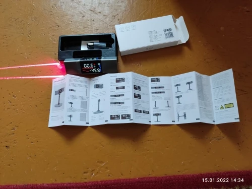 Хороший уровень. Яркость и чёткость цифр и линий просто поражает. У меня это 4 модель уровня. Этот самый чувствительный и самый быстрый. Маленький и приятный на ощупь. Можно в кармене носить. Подставка самоклеющаяся, не знаю на долго ли. Не самоцентрирующийся! Это просто уровень с лазером. Жаль что нет магнита на нижней части. Доставка в Пензу за 16 дней.