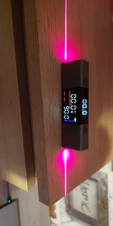 получено. работает. с торца одной стороны 2 перпендикулярные линии., а на табло значение в градусах. отклонение от "внутренней" вертикали и горизонтали.