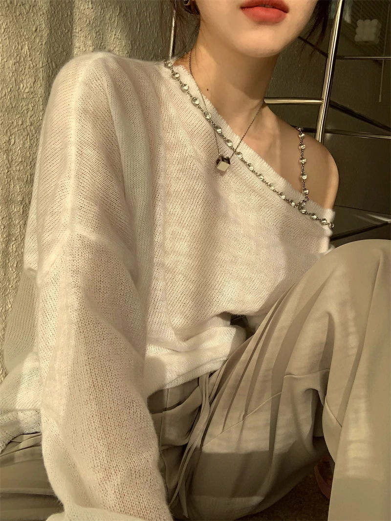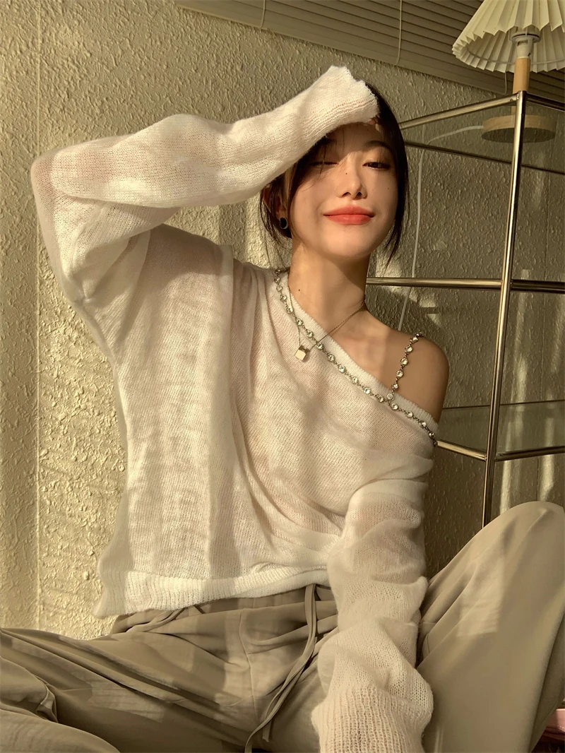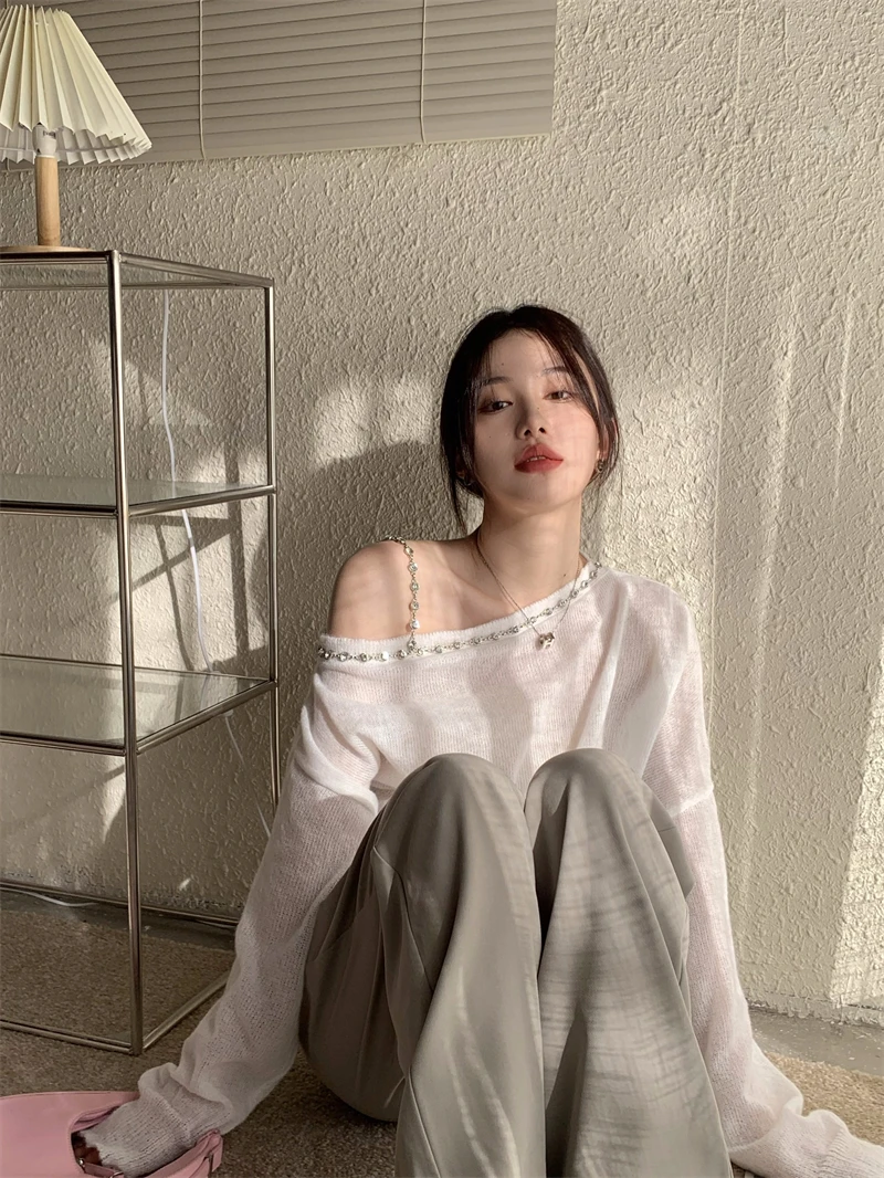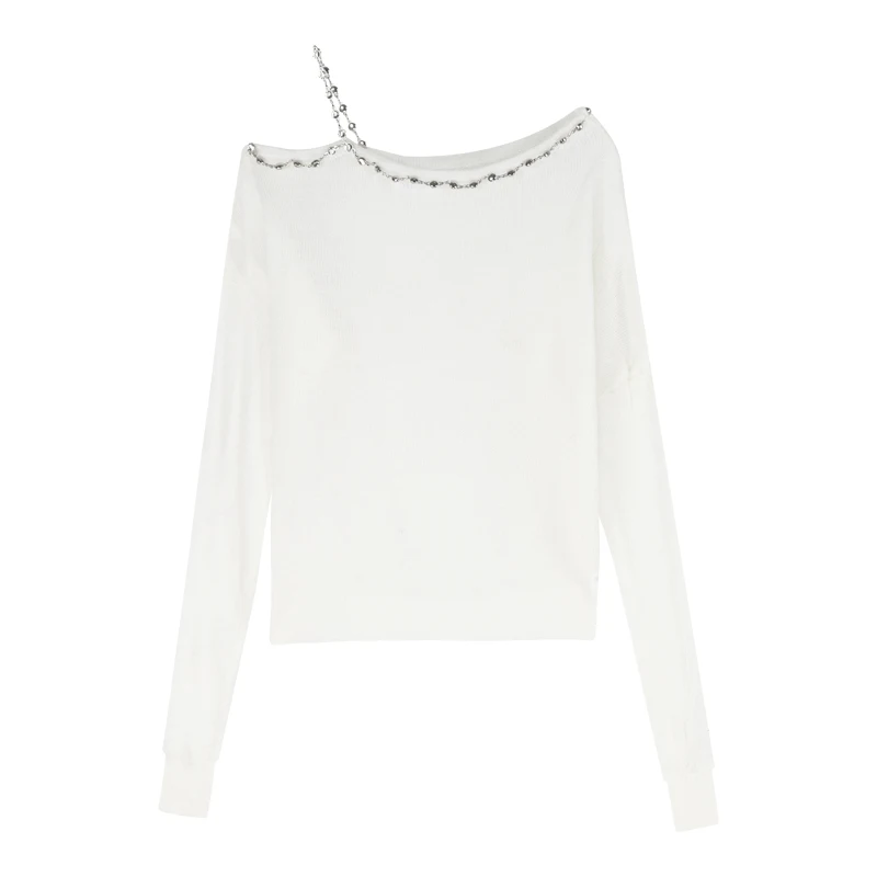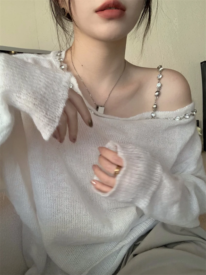 Y2KY2KDesign чувственный свитер с открытыми плечами и цепочкой со стразами, Женский Осенний Топ 2021, Свободный пуловер, свитер