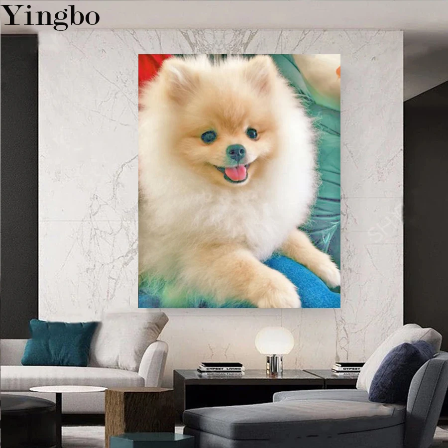 5D алмазная живопись своими руками, щенки померанского шпица, алмазная вышивка, мозаика для домашних животных, собака, фотовышивка