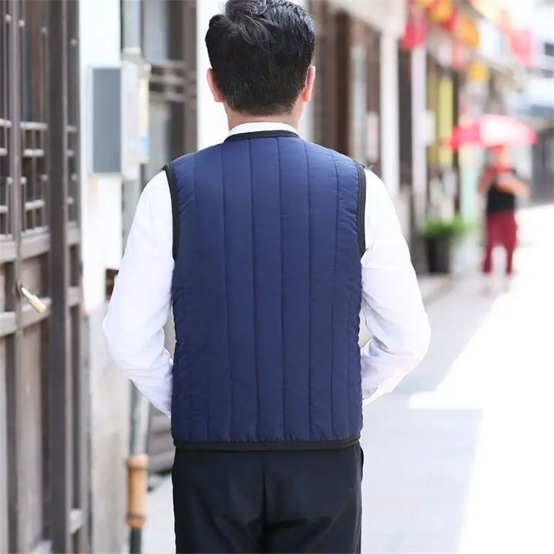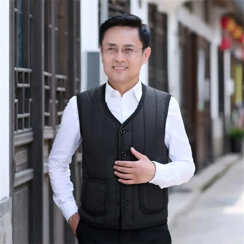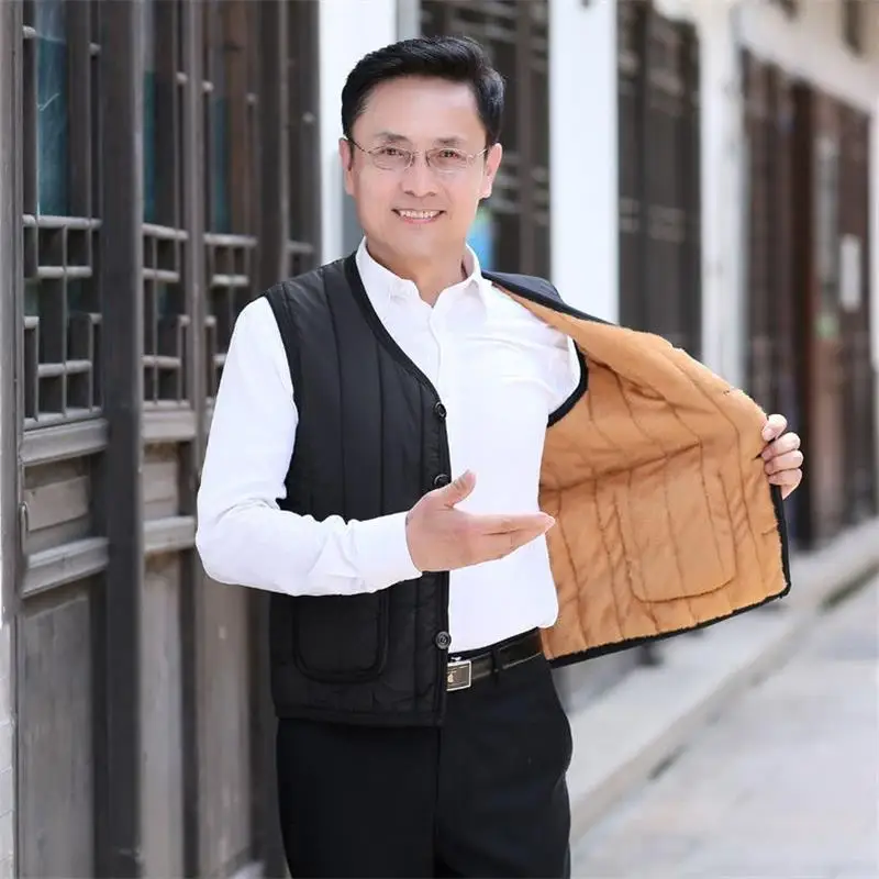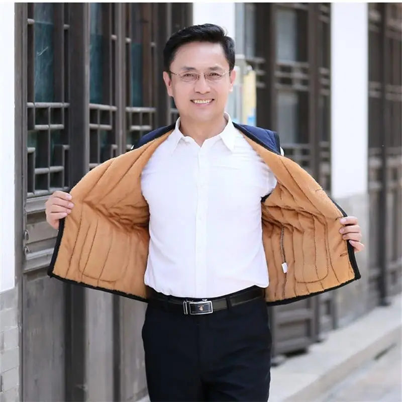 Мужской повседневный жилет, мужская осенне-зимняя теплая куртка без рукавов с карманами, бархатный жилет для мужчин среднего возраста