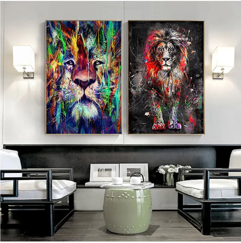 Абстрактная красочная Львиная живопись на холсте, мультфильмы, искусство, скандинавские плакаты и принты, настенные картинки для гостиной, украшение без рамки