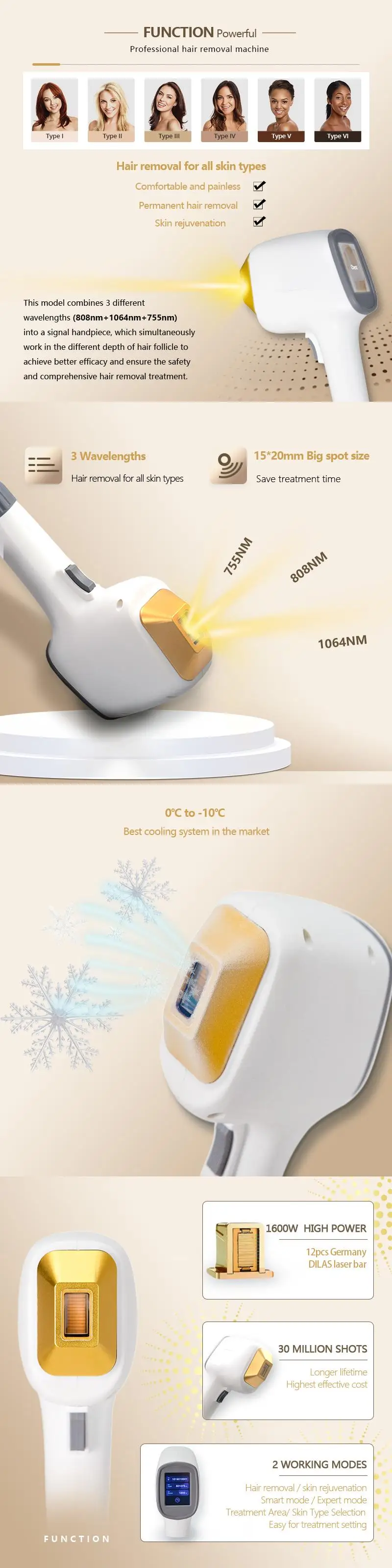 Длина волны 755mn 808nm 1064nm 3 работает вместе: