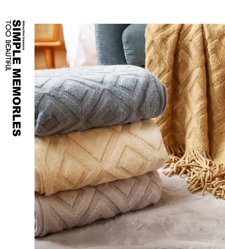 Текстильное домашнее декоративное одеяло для дивана, нордическое вязаное кашемировое утолщенное покрывало, плотное теплое покрывало для ночного времени