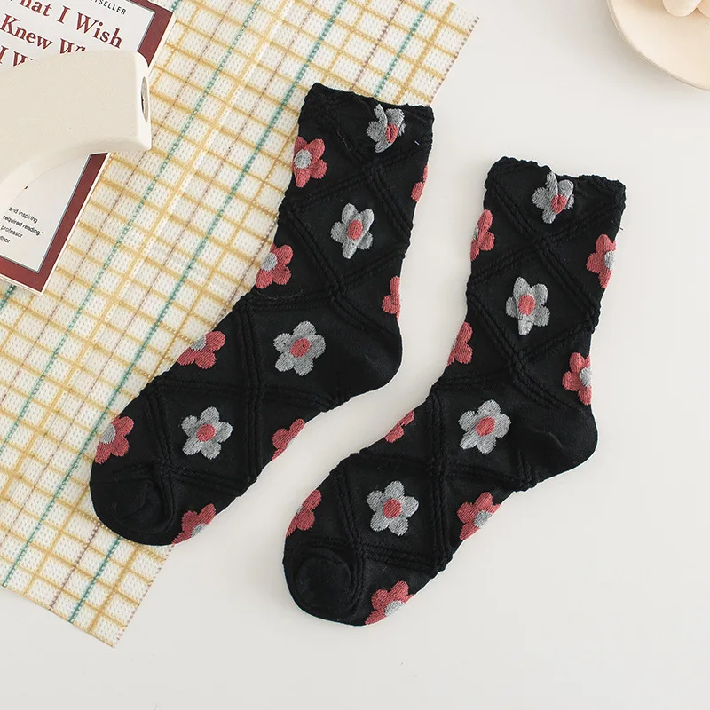высокие носки женские харадзюку корейский стиль японский стиль длинные хлопок Ретро рельефные кофейные носки в клетку женские носки Харадзюку корейский стиль носки женские японские модные носки уютные