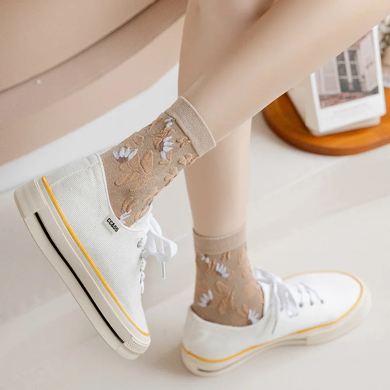 Кружевные носки в стиле Харадзюку с цветочным принтом, женские милы...