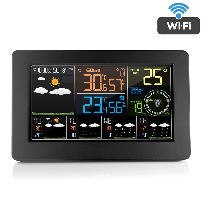 Многофункциональный цветной WiFi монитор метеостанции управление приложением Умный Цифровой термометр Крытый Открытый термометр гигрометр
