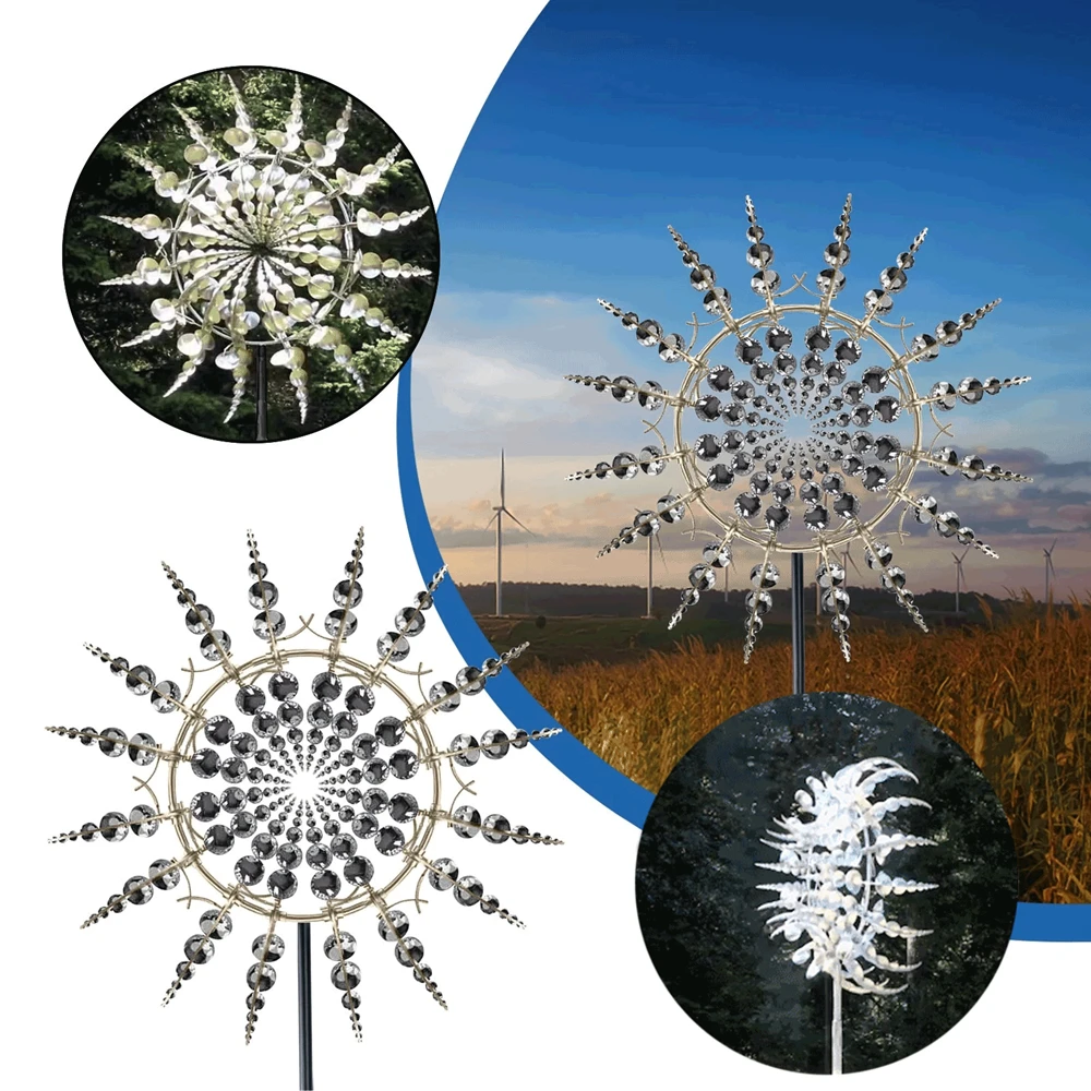 Уникальная и волшебная металлическая ветряная мельница на солнечной батарее, ветряной Спиннер, кинетические металлические ветряные Спиннеры для наружного освещения, декоративные стойки для газона и сада