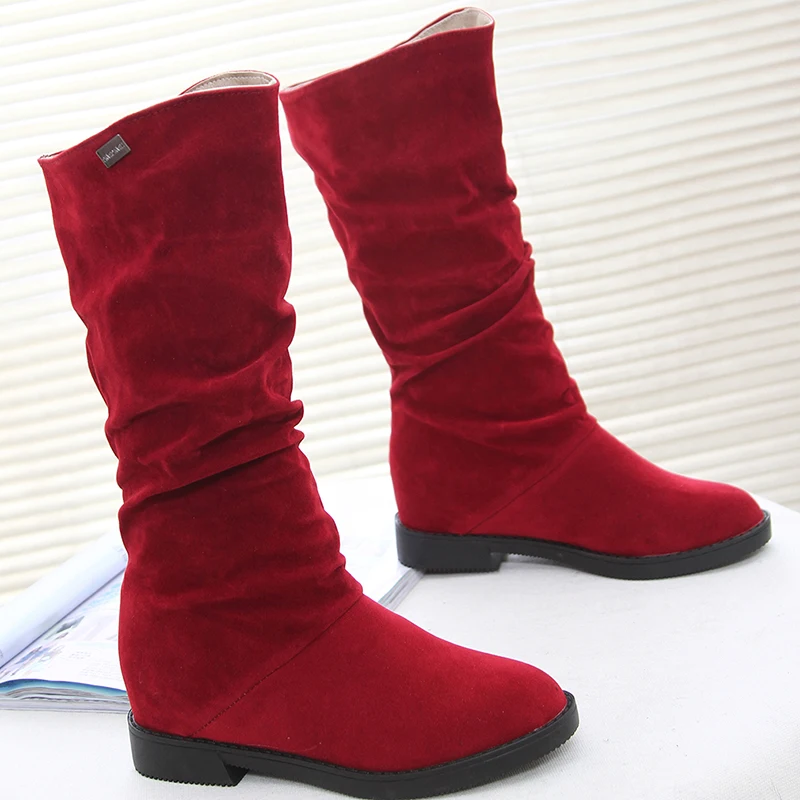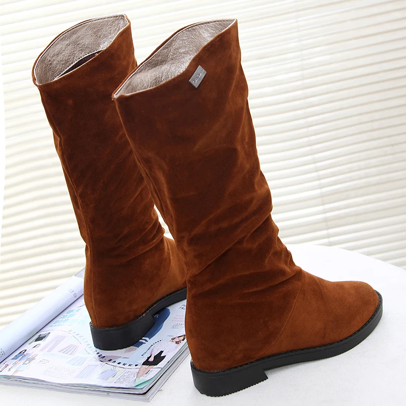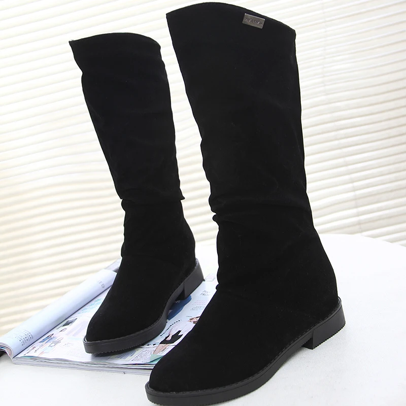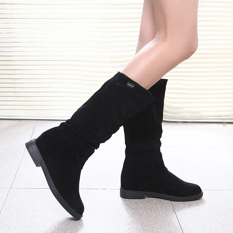 Осенне-зимние женские сапоги, матовые сапоги из флока для женщин, ж...