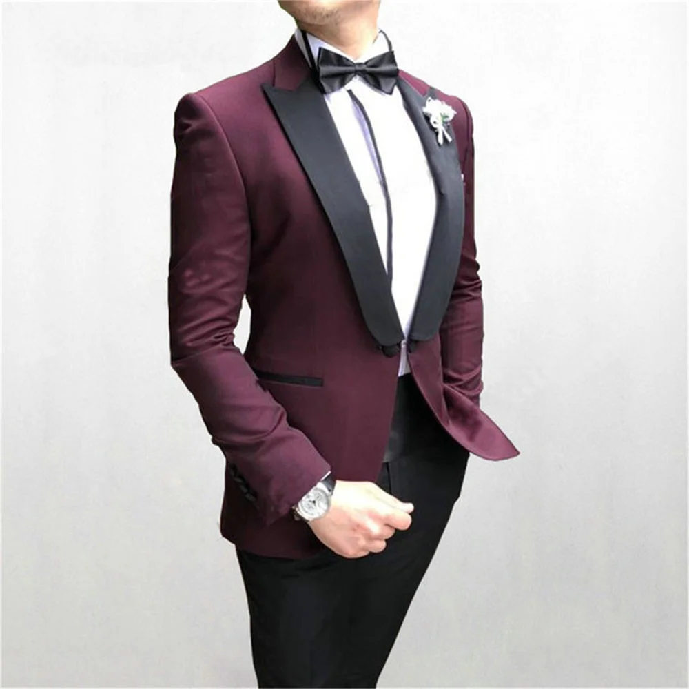 Костюм мужской красный, пиджак и брюки, мужские свадебные смокинги, приталенные свадебные костюмы для жениха, костюм для жениха, костюм для вечеринки, комплект из 2 предметов