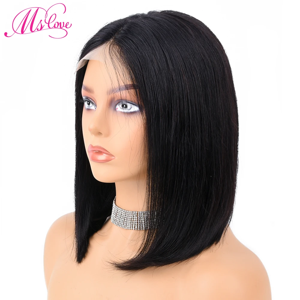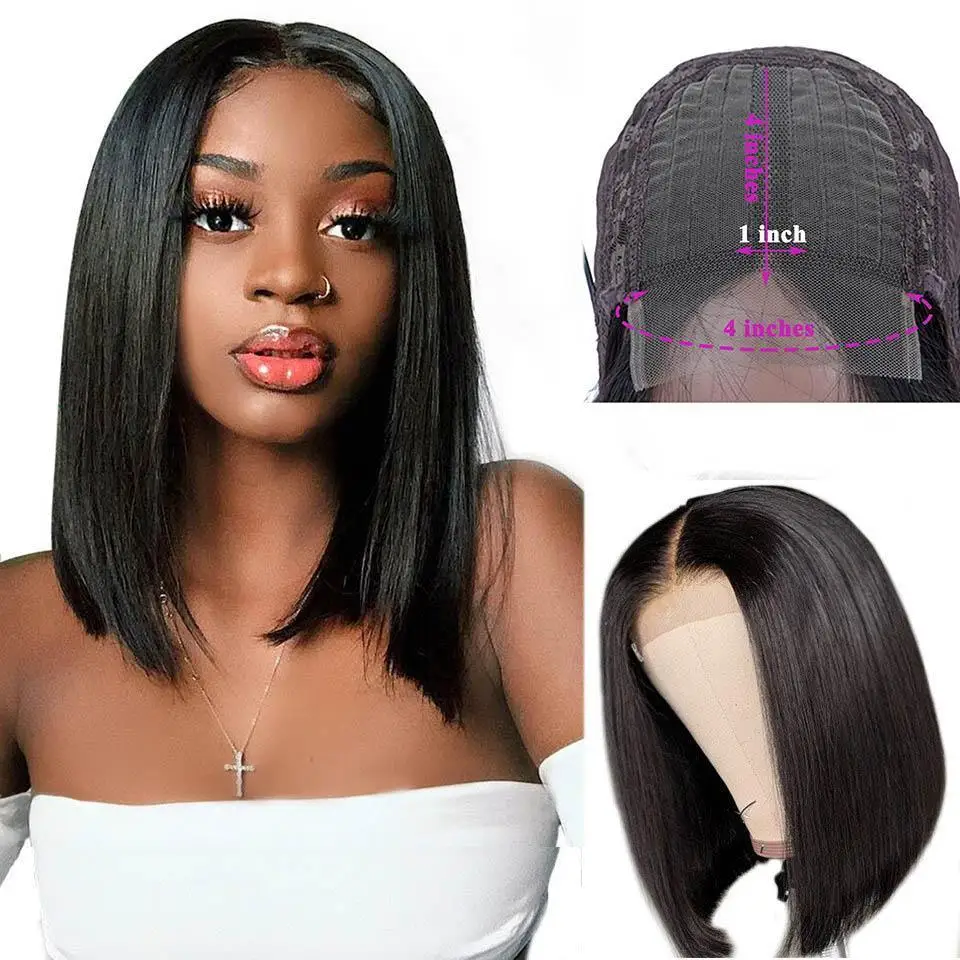 Парик Короткий Боб, прямые парики из человеческих волос с косточками для черных женщин, предварительно выщипанные парики 4x4x1, парики из бразильских волос, парики на сетке, 150% Denisty