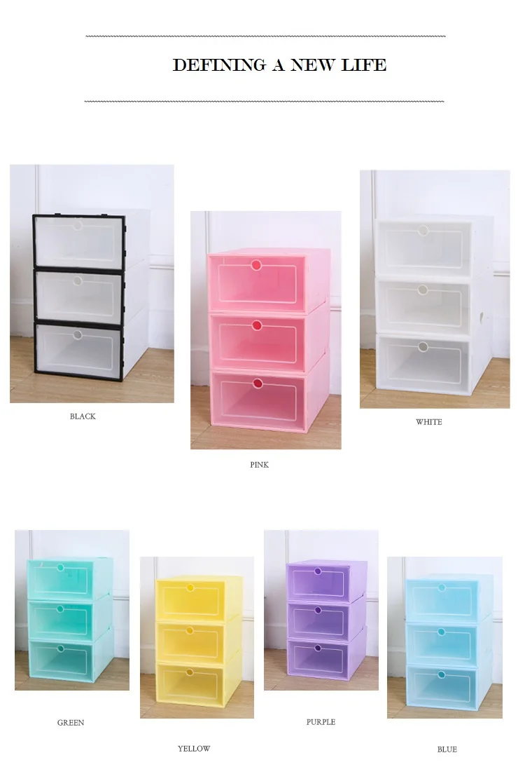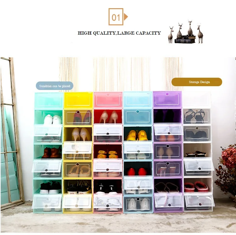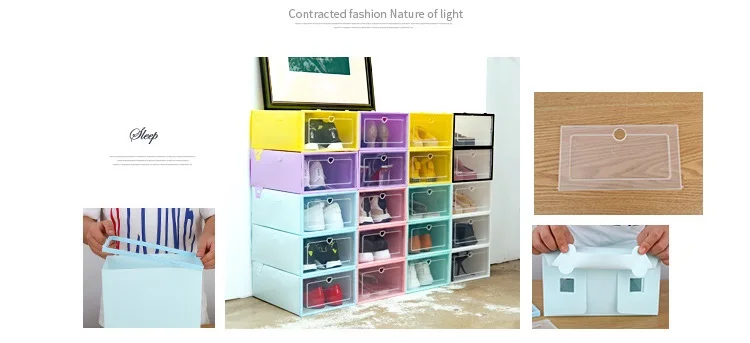Коробка для хранения обуви имеет простой дизайн, имеет большую емкость и сильный подшипник. Прозрачная пластиковая коробка для обуви гарантирует, что вы можете увидеть внутреннюю часть обувного шкафа, не открывая все обувные коробки, что позволяет легко найти подходящую обувь.